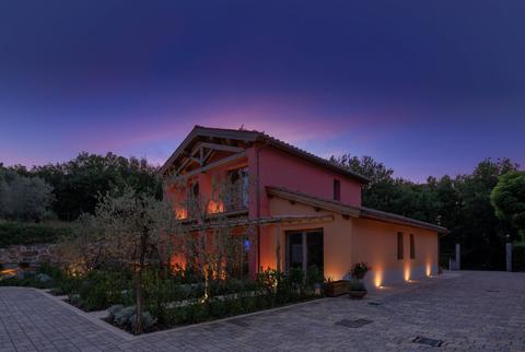 The estate covers around 20 hectares, partly cultivated with vineyards, olive groves and fruits and partly wooded.